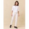 Klassisk chinos i myk bomullsblanding med god stretch. Buksen har god livhøyde, linning med beltestropper, hekte og glidelås samt en liten sølvfarget logbadge på venstre side. Lite ton i ton broderi i livet bak. Feminin passform med ben som smalner litt nederst. Modellen er 167 cm høy og har på seg str S.