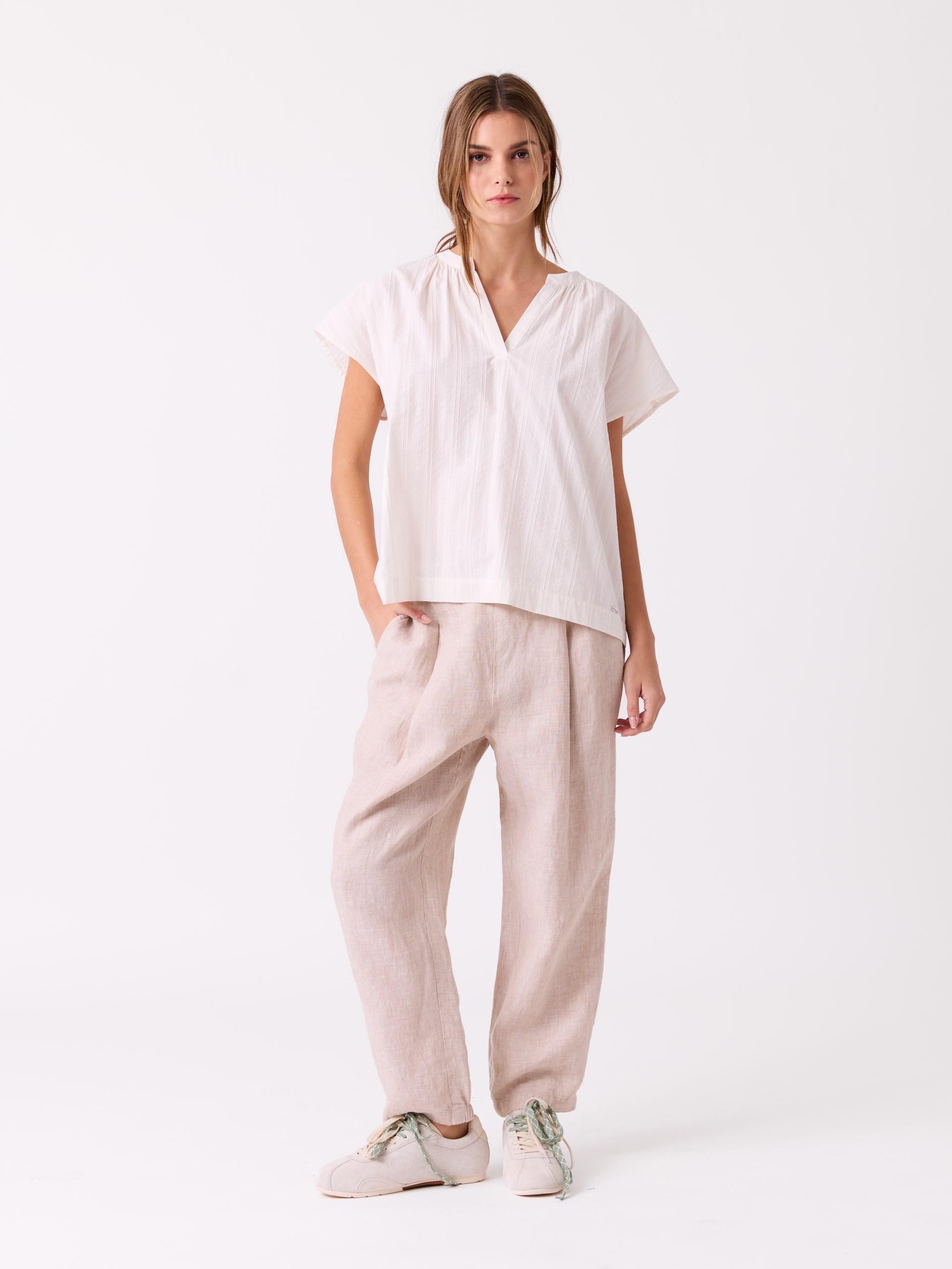 Modellen er 171 cm høy og har på seg str S.Lucy linbukse