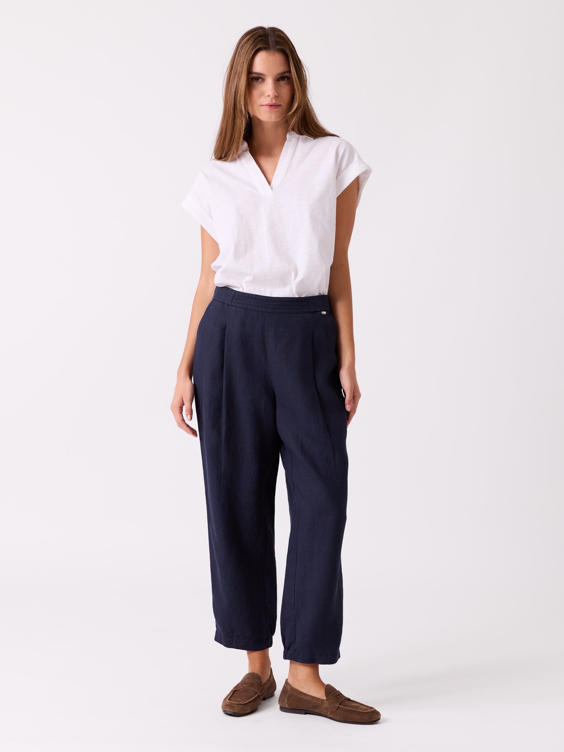 Modellen er 171 cm høy og har på seg str S.Lucy linbukse