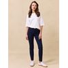 Sabine Cropped Color er en elegant bukse laget i 10 oz bomullssateng med stretch, som gir en komfortabel passform. Plagget er innfarget og har en dyp og jevn farge. Buksen har smalt sete, normal livhøyde og smale ben som rekker til ankelen, noe som gir en flatterende silhuett. Glidelåsgylf med knapp i front og en logobadge på baksiden. Modellen er 167 cm høy og har på seg str S.