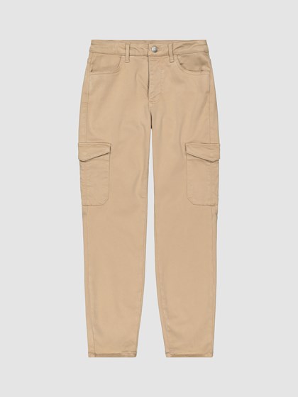 Cargobukse i behagelig lyocellblanding med god stretch. Buksen har fuskelommer med klaff og knapp bak, gode lommer i front og cargolommer med klaff på siden. Høyt liv med logobadge bak, og smal passform. Modellen er 176 cm høy og bruker str S.