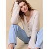 Feminin kort cardigan i myk ullblanding med v hals og pointellestrikk i front, små dekorative knapper og moderat ballongerm med mønsterstrikk på mansjetten.