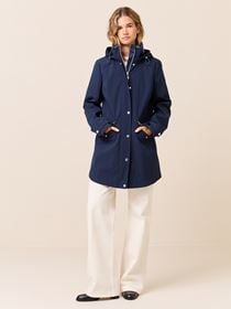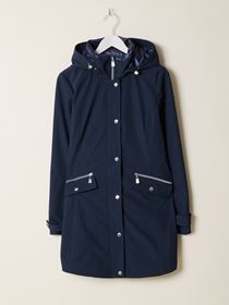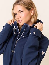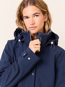 Urban vindtett fritidsjakke i behagelig vindtett og vannavstøtende stretchmateriale med innvendig nylonfôr. Jakken har en feminin lett innsvinget passform, spensel i ryggen og regulering med hempe og knapp på ermet. Lukkes med glidelås og knappelukning, 2 doble frontlommer, en med glidelås og en med knapp og klafflomme. Innerlomme. Avtagbar regulerbar hette og krage med lett vattering samt solid nakkehempe i tricolorefarge. Logobadge i metall på ermet. Modellen er 170 cm høy og har på seg str S.