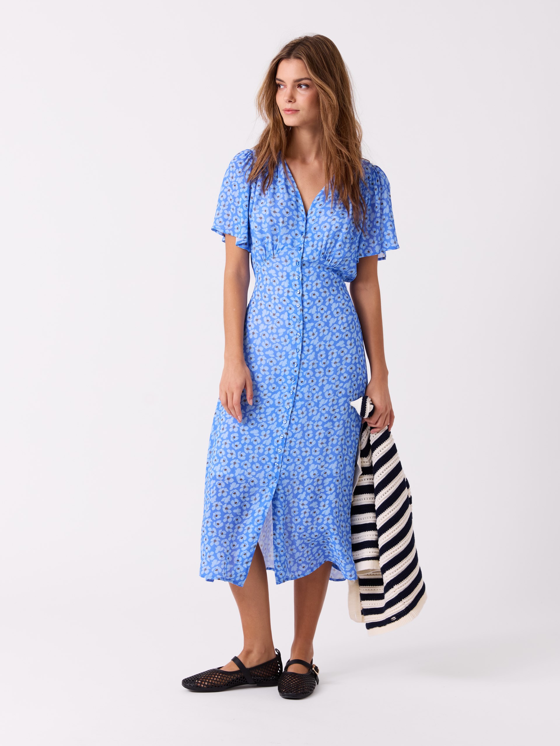 Modellen er 171 cm høy og har på seg str S.Margeau kjole