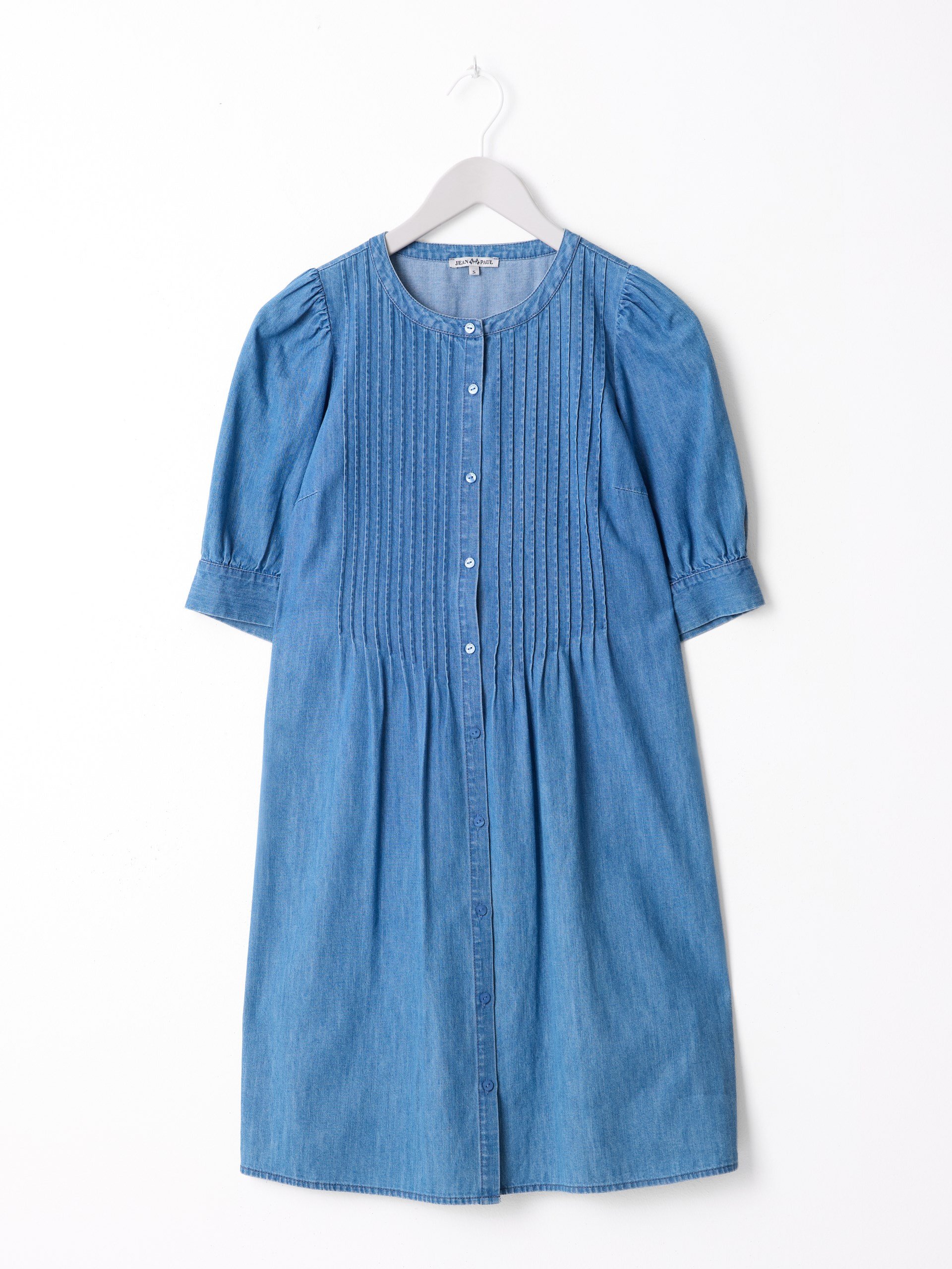 Frontkneppet denimkjole med fine sømdetaljer
