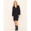 Myk finstrikket kjole med høy andel LENZING™ ECOVERO™ viskose fiber og resirkulert polyester. Kjolen har en liten strikket rysjekrage og v utringing, lang erm med elastisk mansjett med rysjeknat og rett passform med lommer i siden og en liten logobadge i metall nede på siden. Modellen er 170 cm høy og har på seg str M.