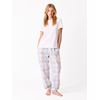 Feminint pysjamas-sett med t-skjorte og bukse i 100% bomull.