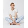Feminint pysjamas-sett med t-skjorte og bukse i 100% bomull. T-skjorten har kort erm, rund hals, ledig passform og metallogo nede på siden. Buksen er i behagelig smårutet flannel og har komfortabel elastikk i livet og nederst på beina. Lite logobroderi på buksen. Settet kommer i en lekker gaveeske.