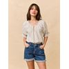 Ginette shorts er laget i en mellomblå indigodenim med et supersteinvasket lyst uttrykk. Materialet har en behagelig elastisitet, som gir god bevegelsesfrihet. Shortsen har glidelåsgylf og knapp i linningen, samt kontrastdetaljer og en skinnetikett med logo bak i livet. Passformen er ledig, med en klassisk lengde.