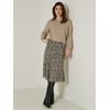 Småmønstret skjørt i lett viskosekvalitet med innvendig fôr, glidelås i siden og en liten logobadge i metall nede på siden. Skjørtet er utskrådd og har splitt i den ene siden. Godt fall. Modellen er 176 cm høy og bruker str S.