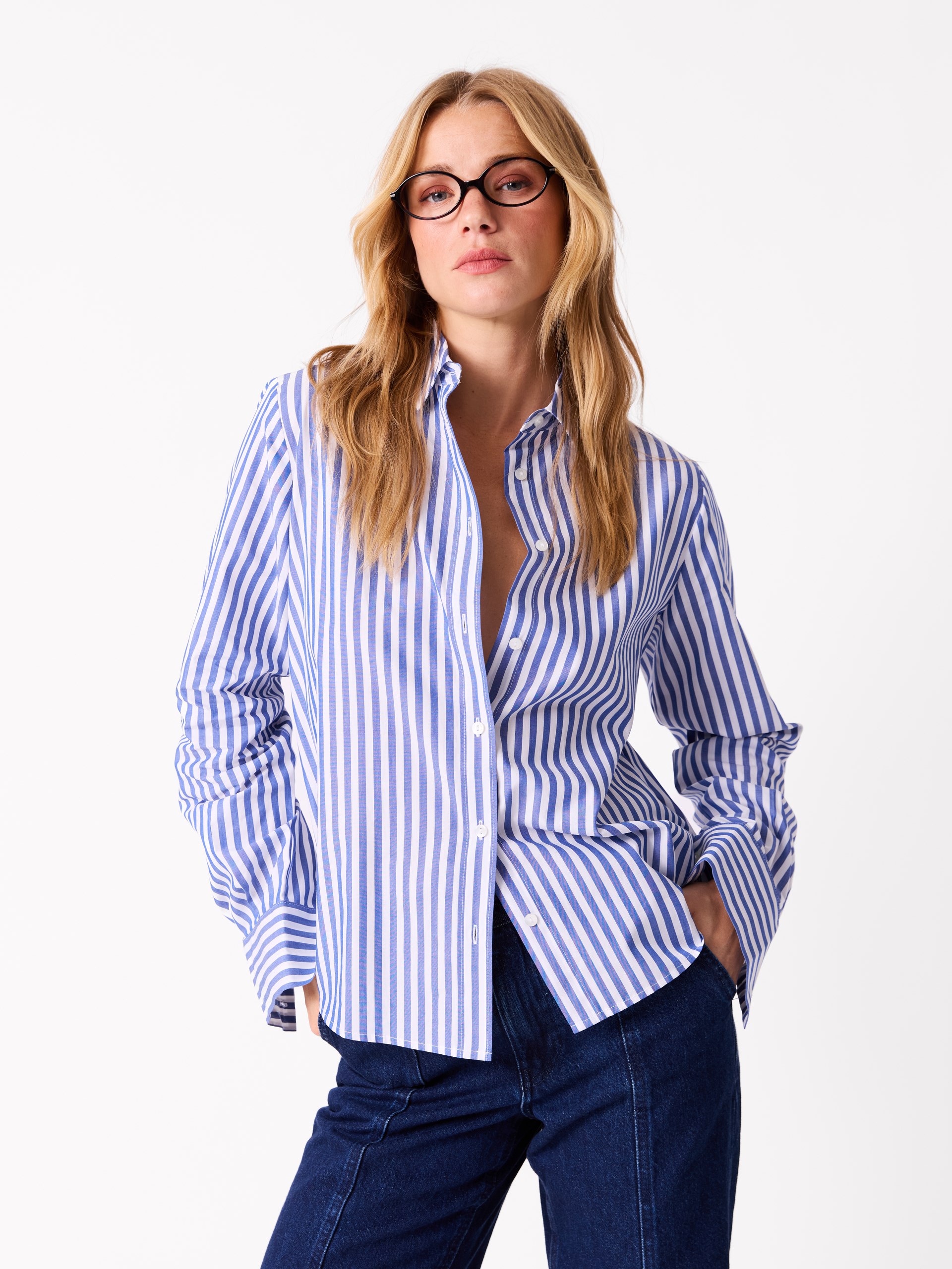 Modellen er 170 cm høy og har på seg str S.Annie skjorte