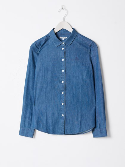Lett innsvingt skjorte i enzymvasket myk indigofarget denim.