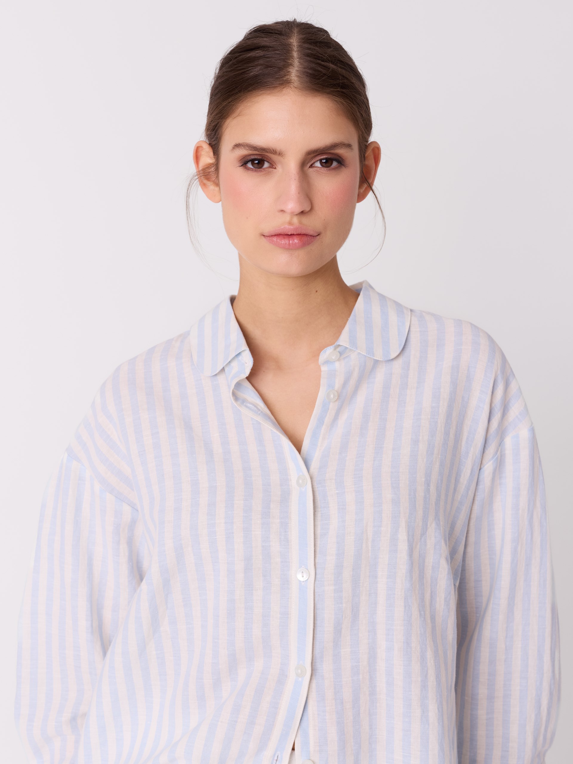Stripet bluse i lin og bomullsblanding