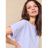 Kortermet stripet topp i behagelig vevet blanding av lin og bomull. Toppen har rundet halsåpning og en liten oppbrett på ermet. Logobagde i metall nede på siden. Ledig passform