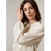 Delikat bluse i lett bomull med dekorativ 3D blonde og ton i ton knapper i front. Blusen har en liten krage, lang erm med knappet mansjett, bærestykke med små rynker og buet avslutning nede. Ledig passform og en liten logobadge i metall nede på siden. Modellen er 176 cm høy og bruker str S.