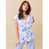 Topp i lett krinklet viskose med delikat print og innvendig fôr. Toppen har v hals, små rynker på skulderen og snøring i livet.