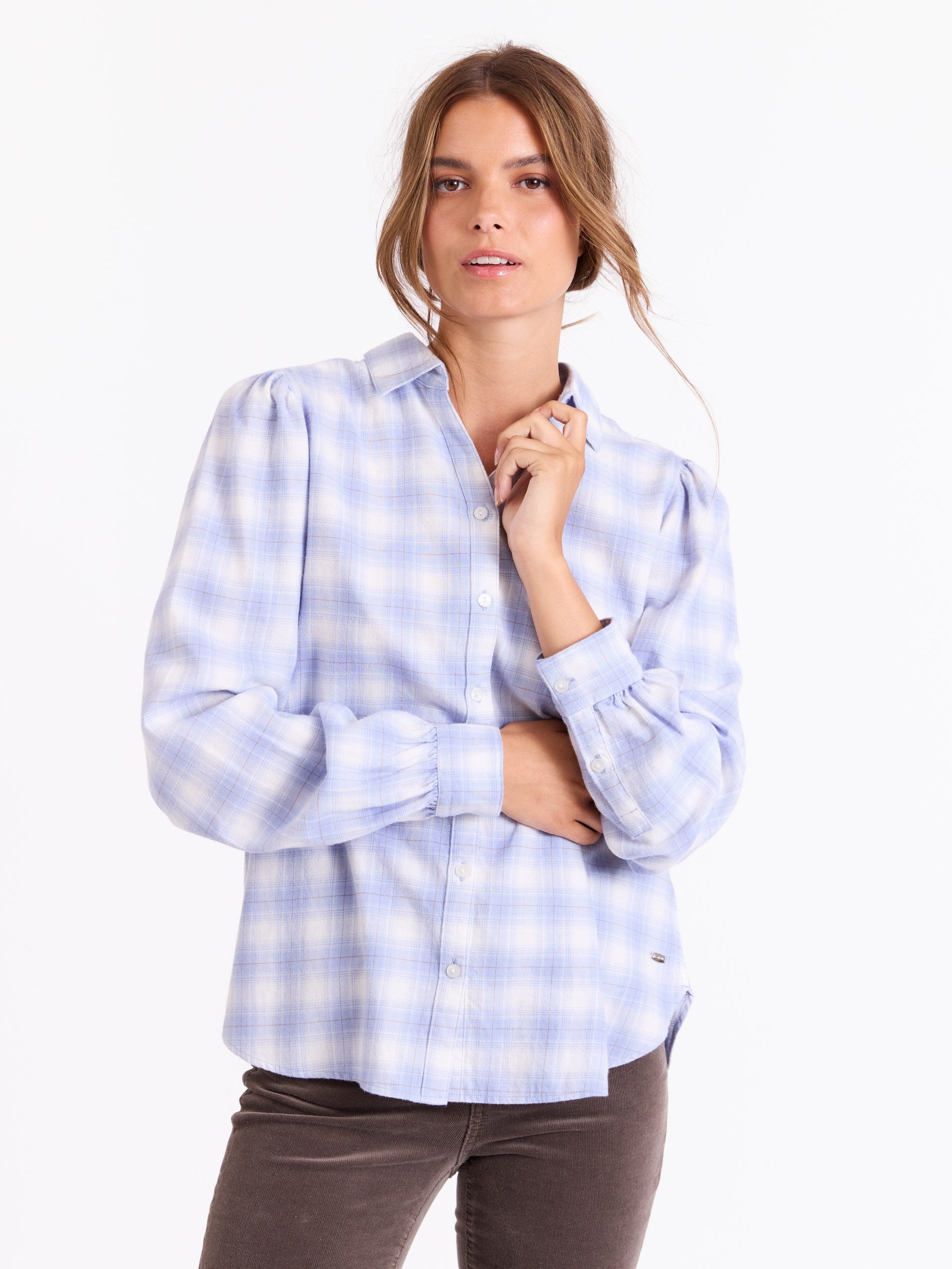 Rutet twillvevet skjorte i lett børstet melert bomull.
