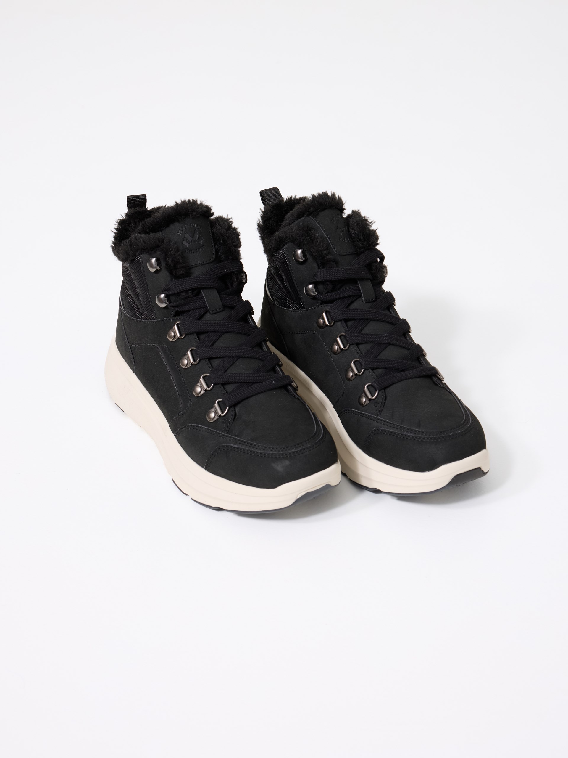 Lett, ankelhøy og sporty sneakerboot med mykt pelsfor.
