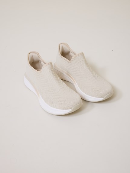 Sporty, lett og luftig fulldempet og sømløs slip-on sko. Pustende formstrikket overdel med behagelig passform. En myk, tredelt pute i hælen former seg etter foten og gjør at skoene sitter godt på foten. Formstøpt ergonomisk tilpasset hælkappe støtter hælen og hindrer at skoene tråkkes ned bak. Myk, pustende og sømløs jaquard-vevet overdel gir god komfort. . Behagelig passform. Lett, Ergonomisk formet og dempende phylon såle.