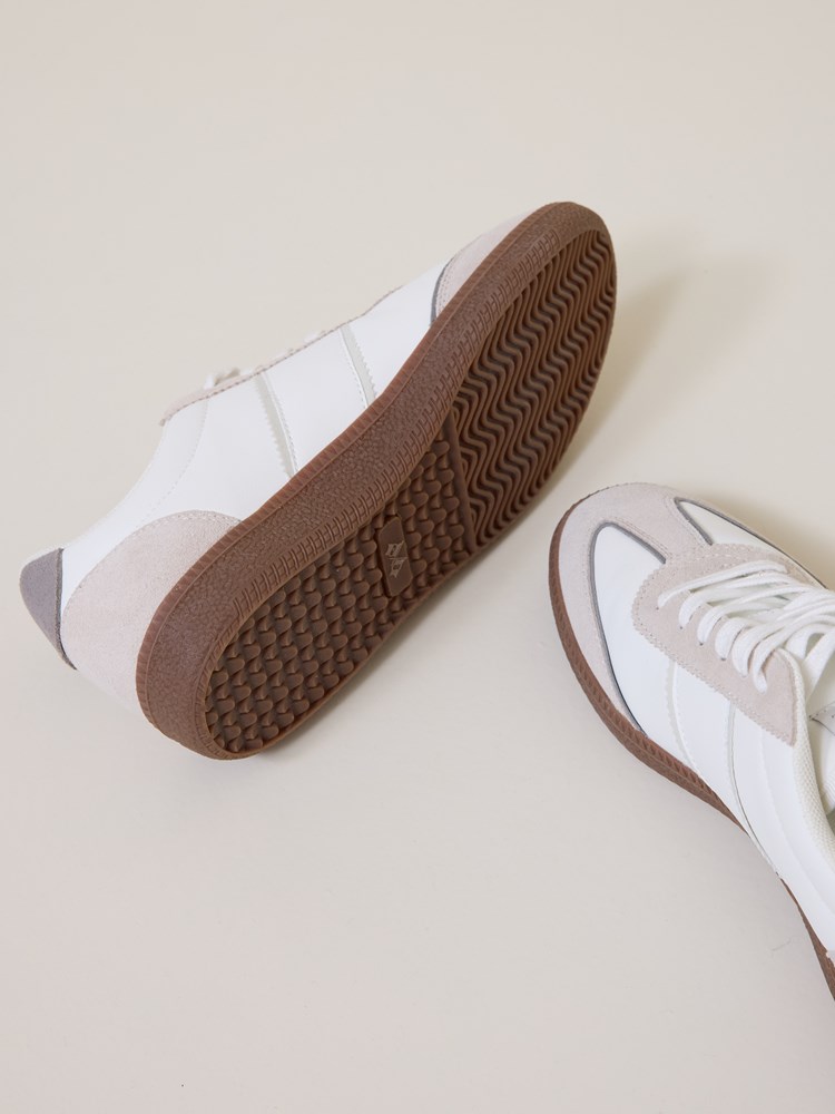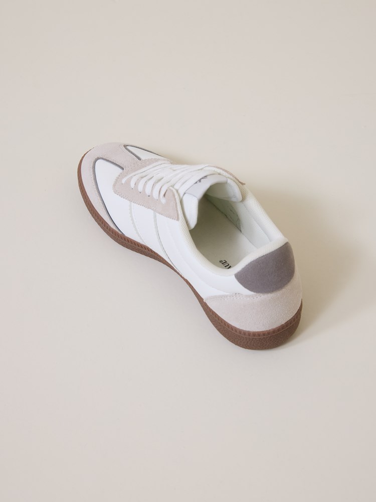 Lav retro sneaker i semsket syntetisk skinn med T-tå i klassisk 70-talls stil.