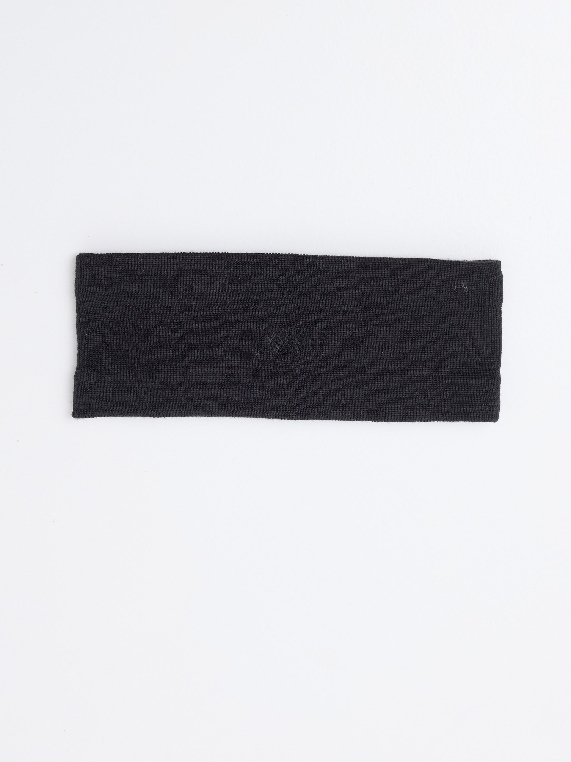 Pannebånd i myk ullblanding med fleecefôr og ton i ton logo i front. Pannebåndet er 9 cm høyt.