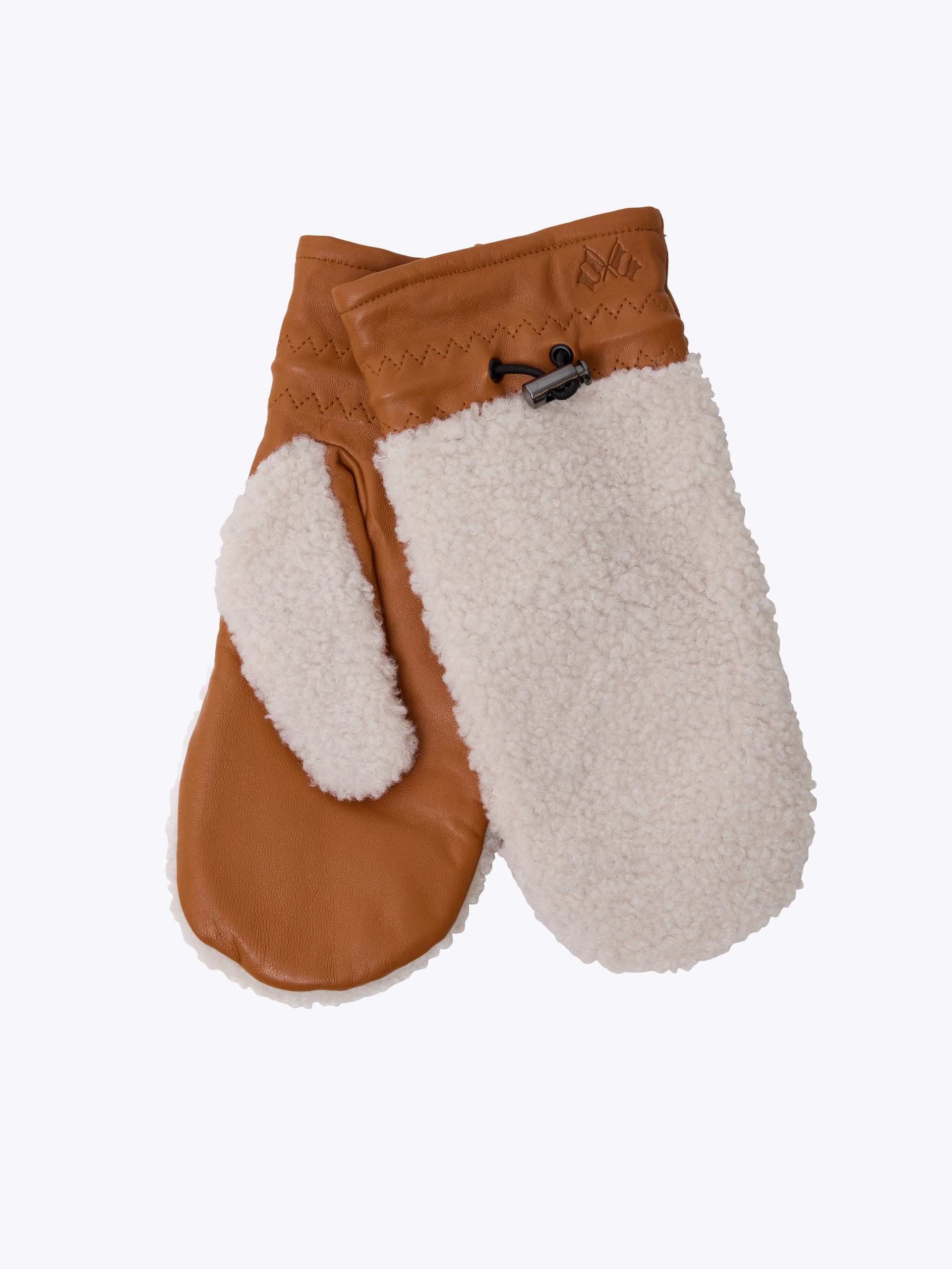 Varm og lun vott i kombinasjon teddystoff og skinn.