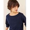 Jerseytopp i lin med boxfit passform. Toppen har senket skuldersøm, ermlengde til albuen, små splitter i sidene og rundet halsåpning.