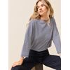 Oversized topp i komfortabel smalstripet jersey av bomull og lin. Toppen har rundet båthals, senket skuldersøm med 3/4 lang erm, liten logobadge i sølvfarget metall og rett avslutning nede. Modellen er 170 cm høy og har på seg str S.