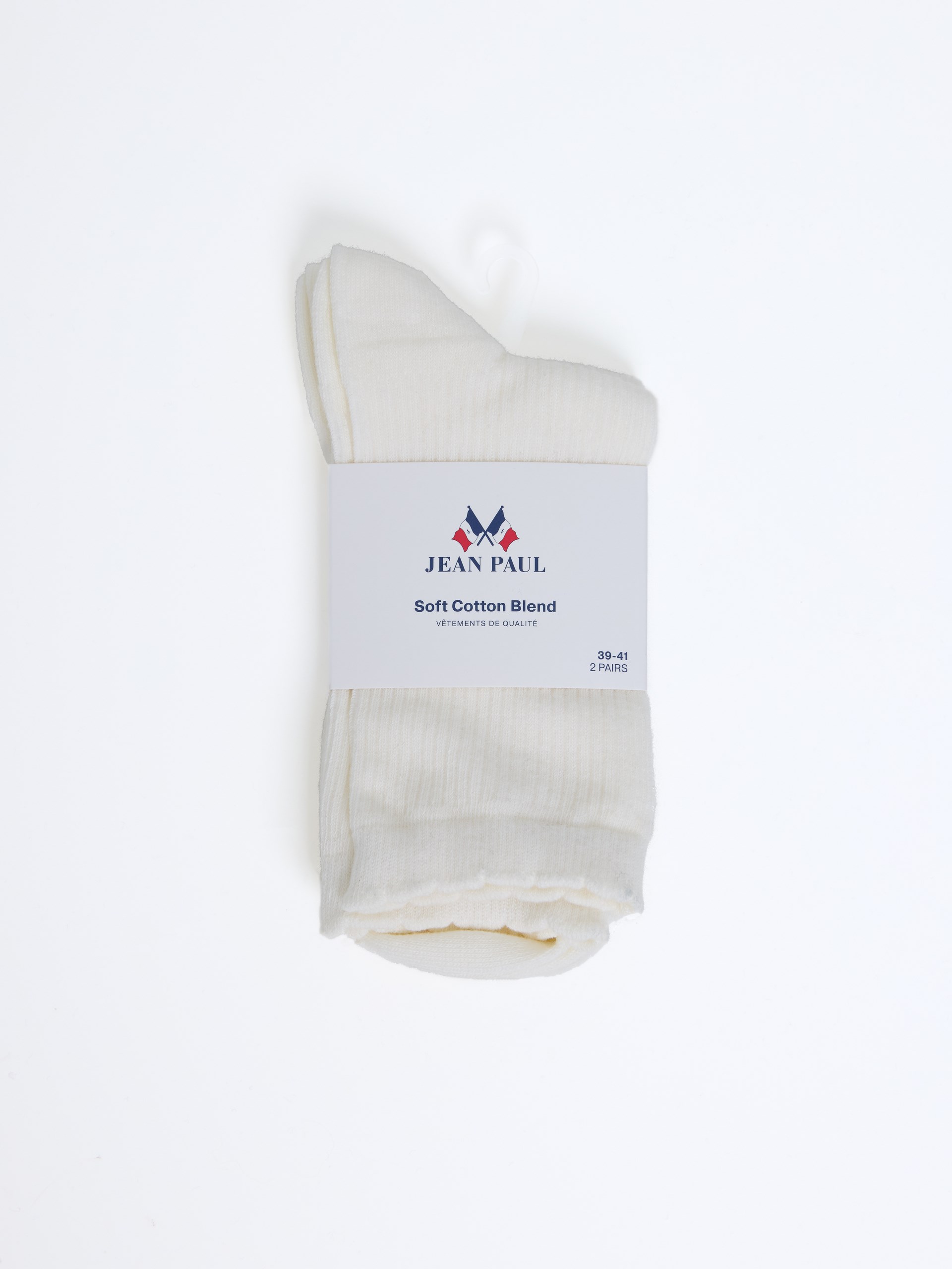 2 pk feminin sokk i ribbestrikket bomullsblanding med delikat scallopp-kant på skaftet. Sokken har god passform.