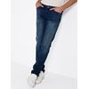 Trendy og behagelig 5-lommers jeans med komfortabel stretch. Varianten har et lett steinvasket uttrykk med slitasje på front og bak med kontrastdetaljer og blå skinnetikett med logo bak i livet. Passform: Skinny Fit -malt setevidde, normal livhøyde og avsmalnede ben som passer til de som ønsker en smalere silhuett. Materiale: Mellomblå Denim med komfortabel stretch.
