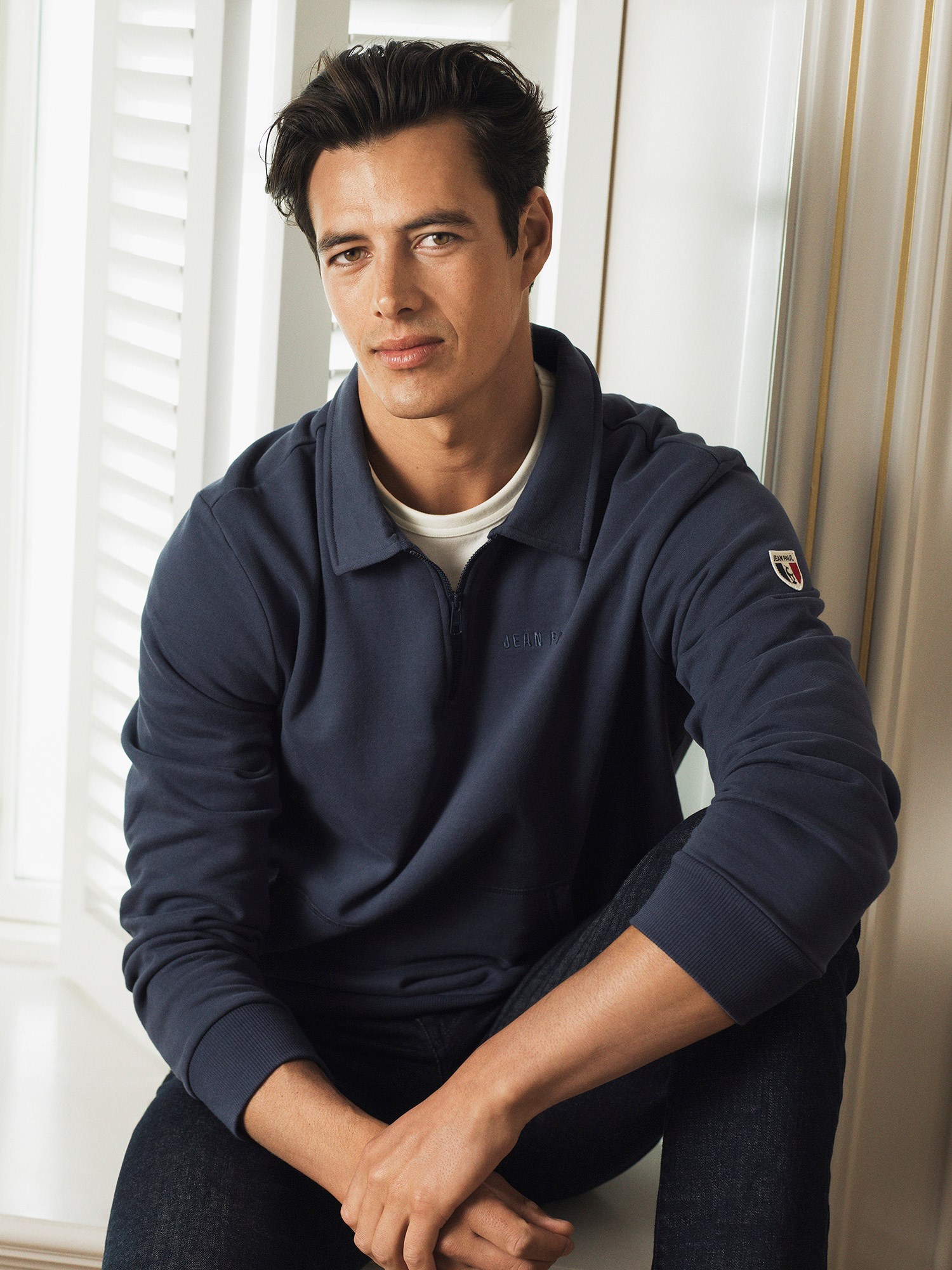 Modellen er 189 cm høy og har på seg str M.Adrien zipneck