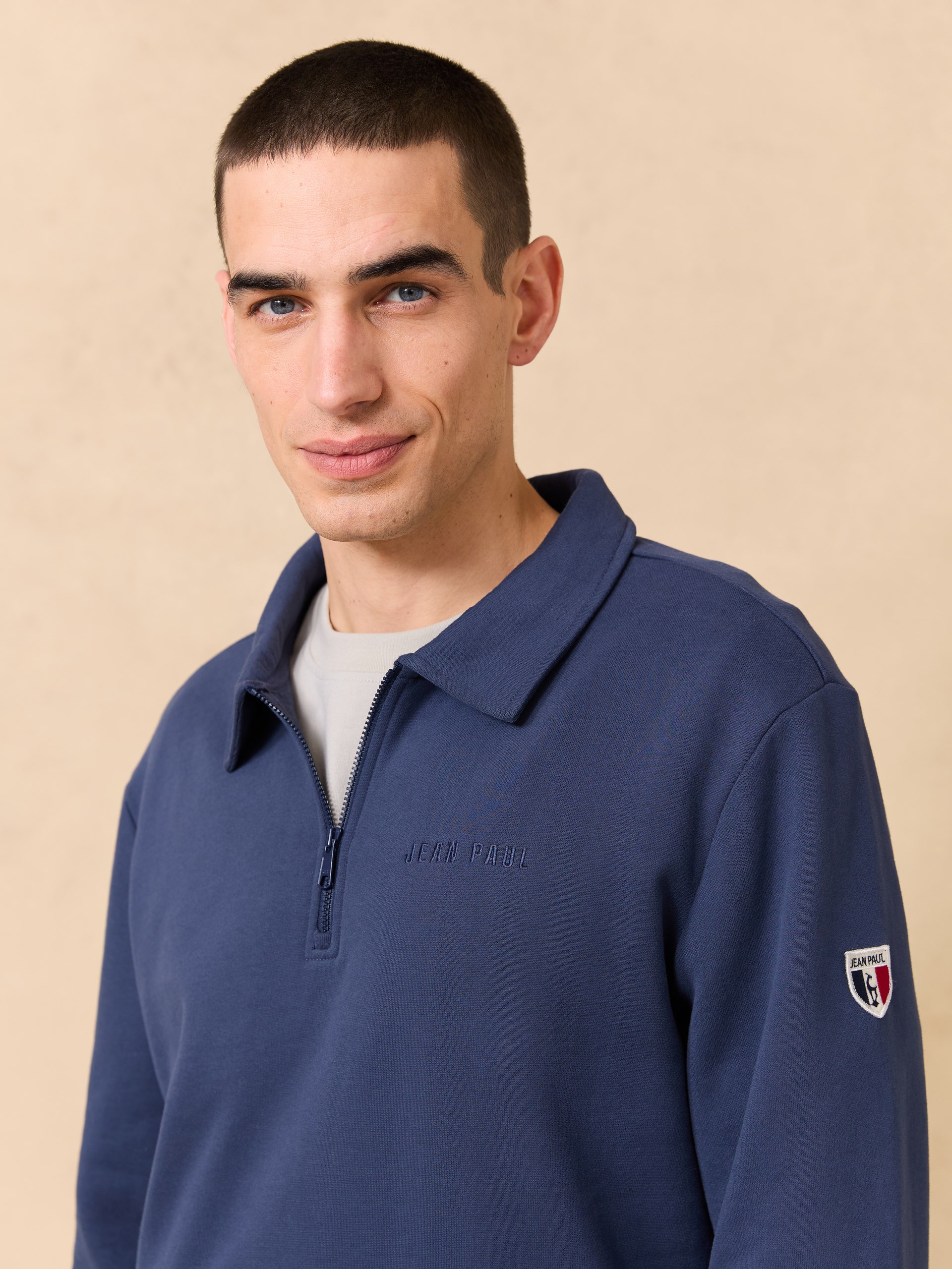 Behagelig sweat i lett børstet bomull med krage og glidelås