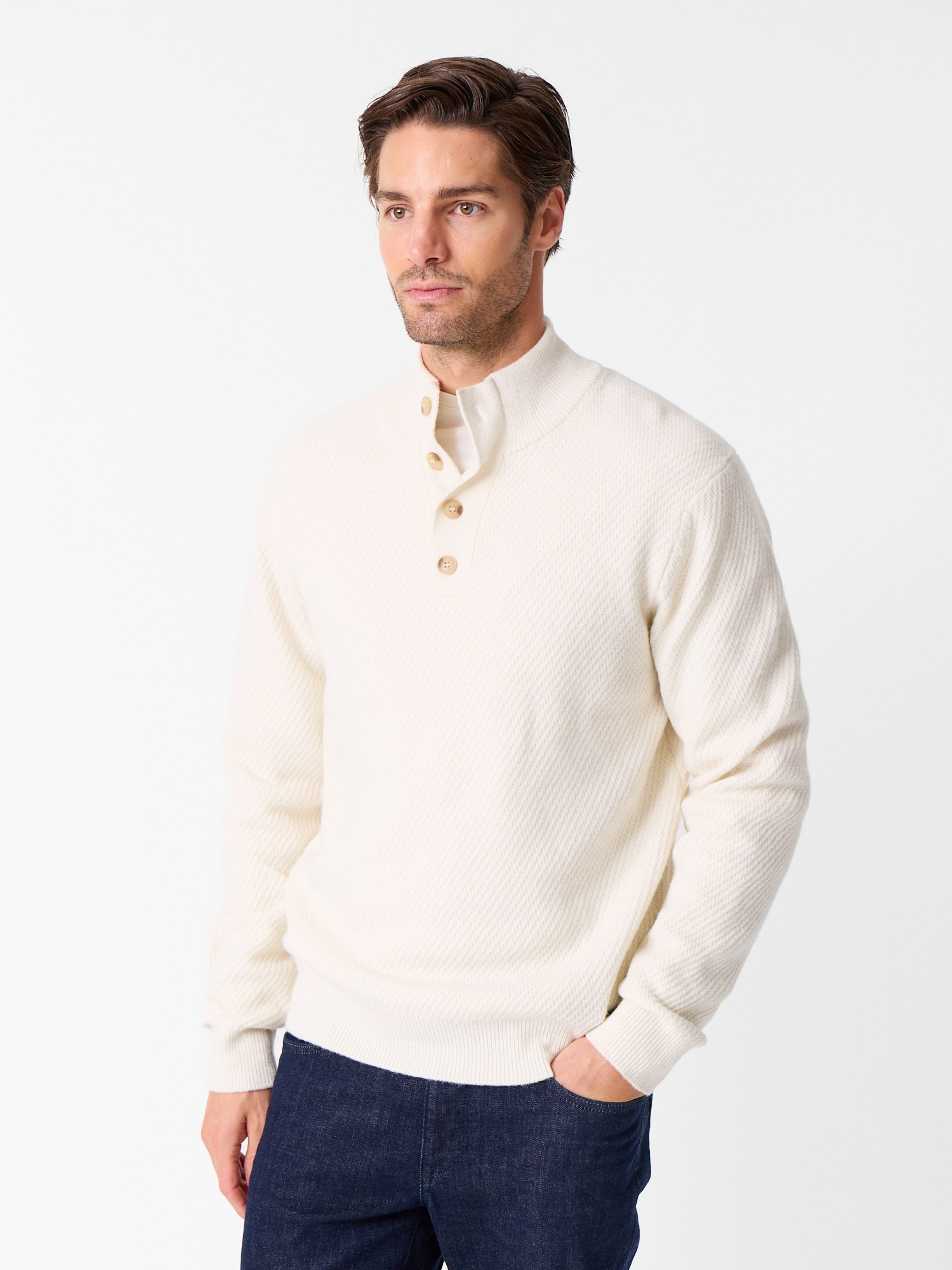Strukturstrikket genser i ull med forsterkende nylon