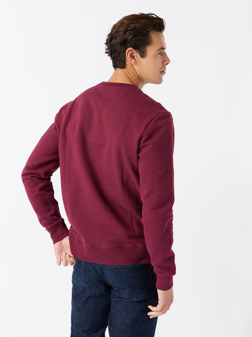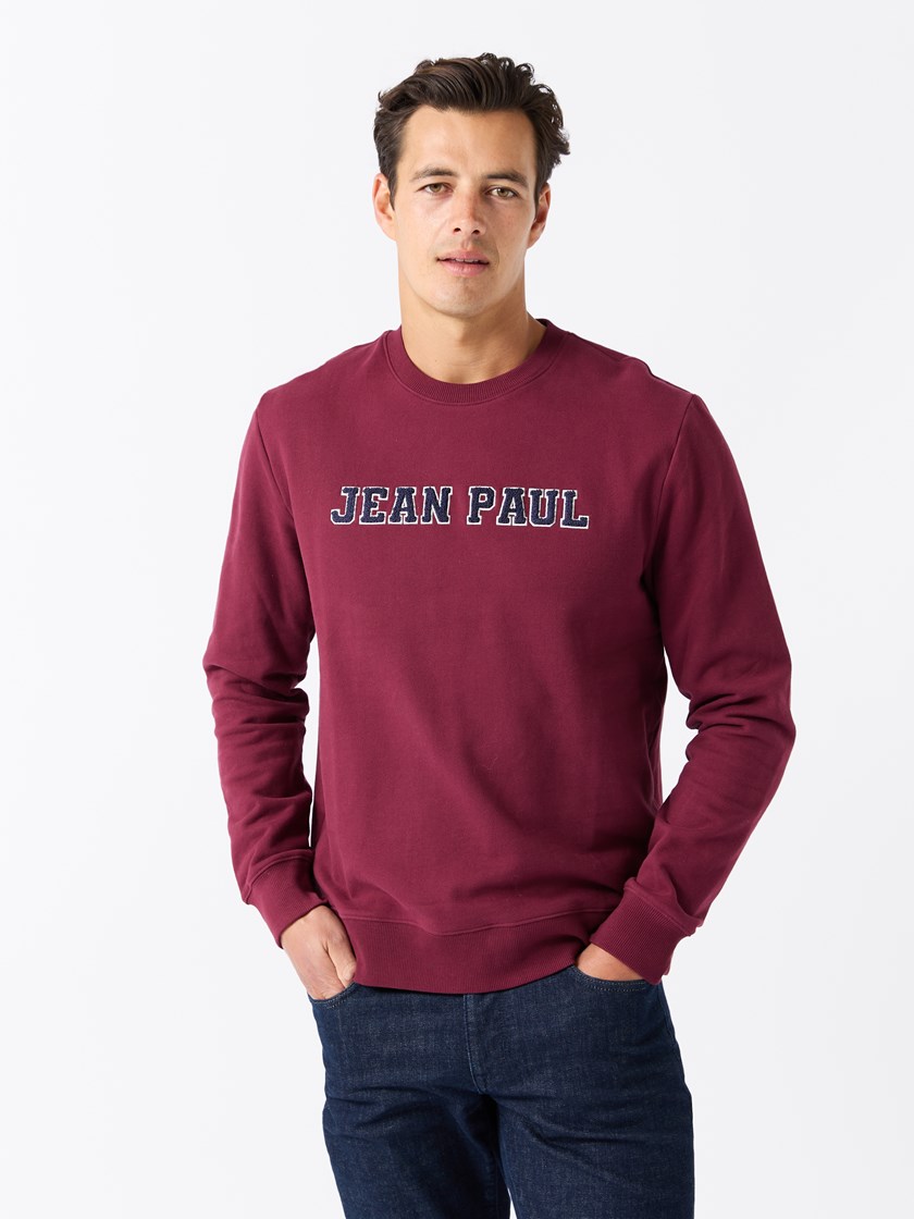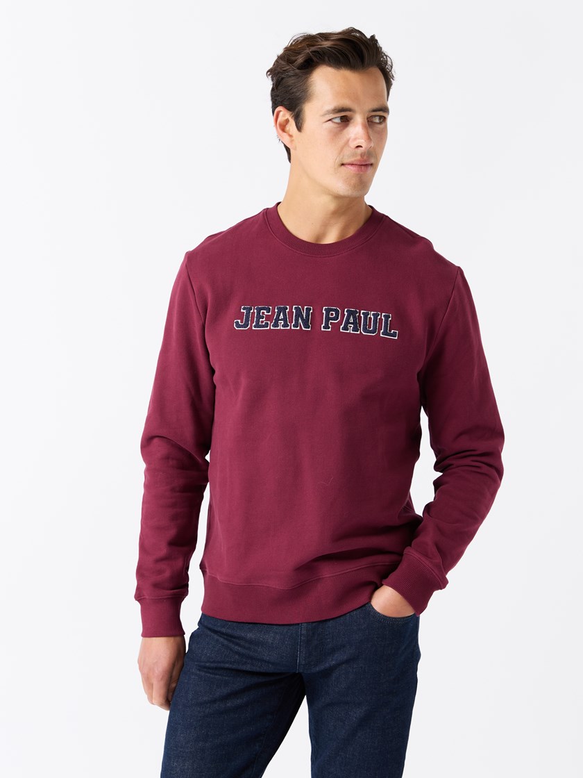 Modellen er 189 cm høy og har på seg str L.Jules collegegenser