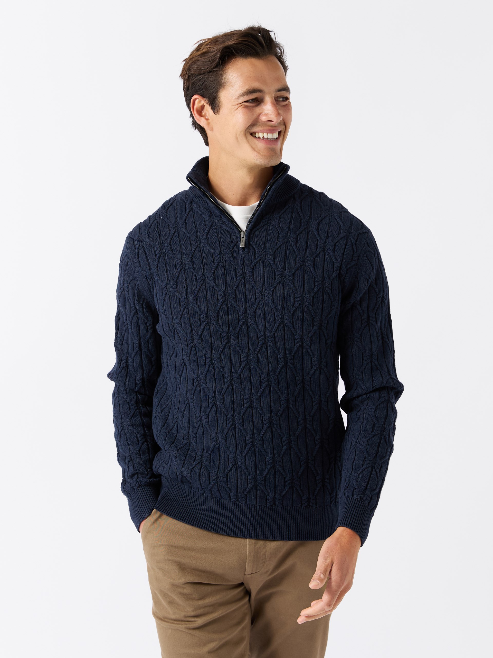 Modellen er 188 cm høy og har på seg str L.Martin zipneck