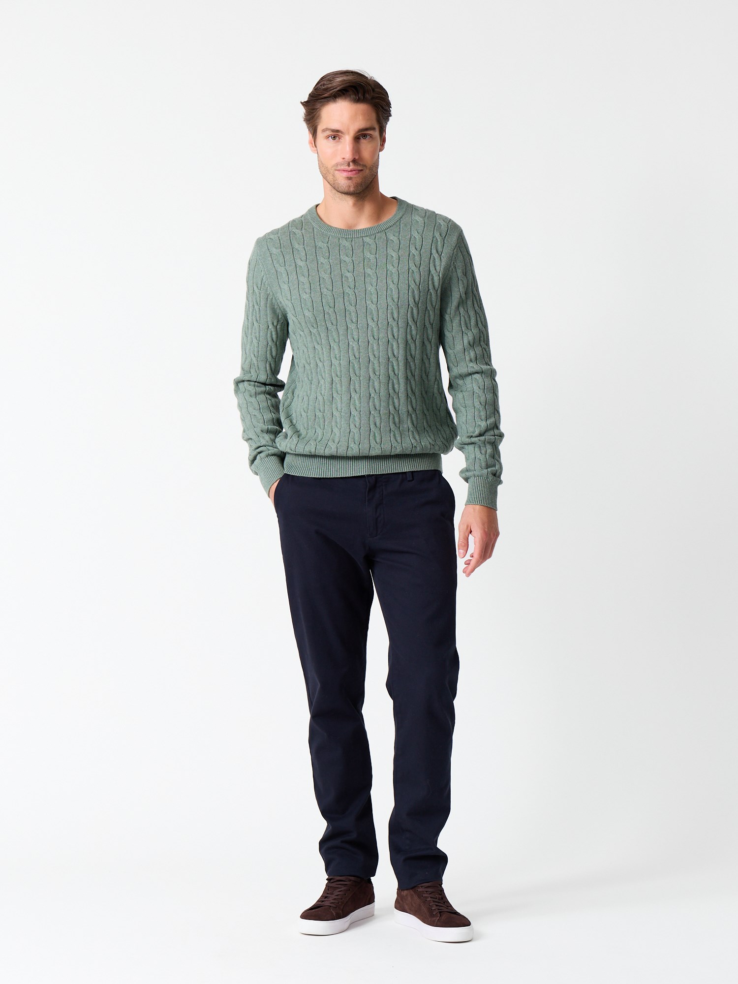 Kabelstrikket genser i behagelig 100% bomull
