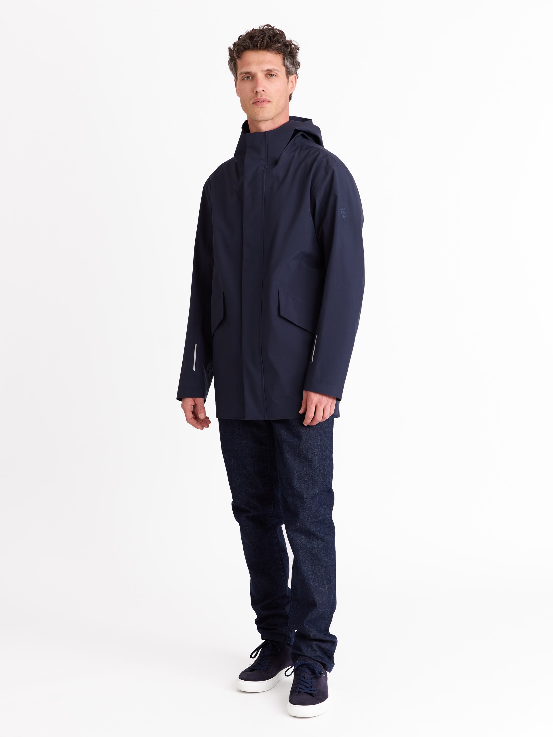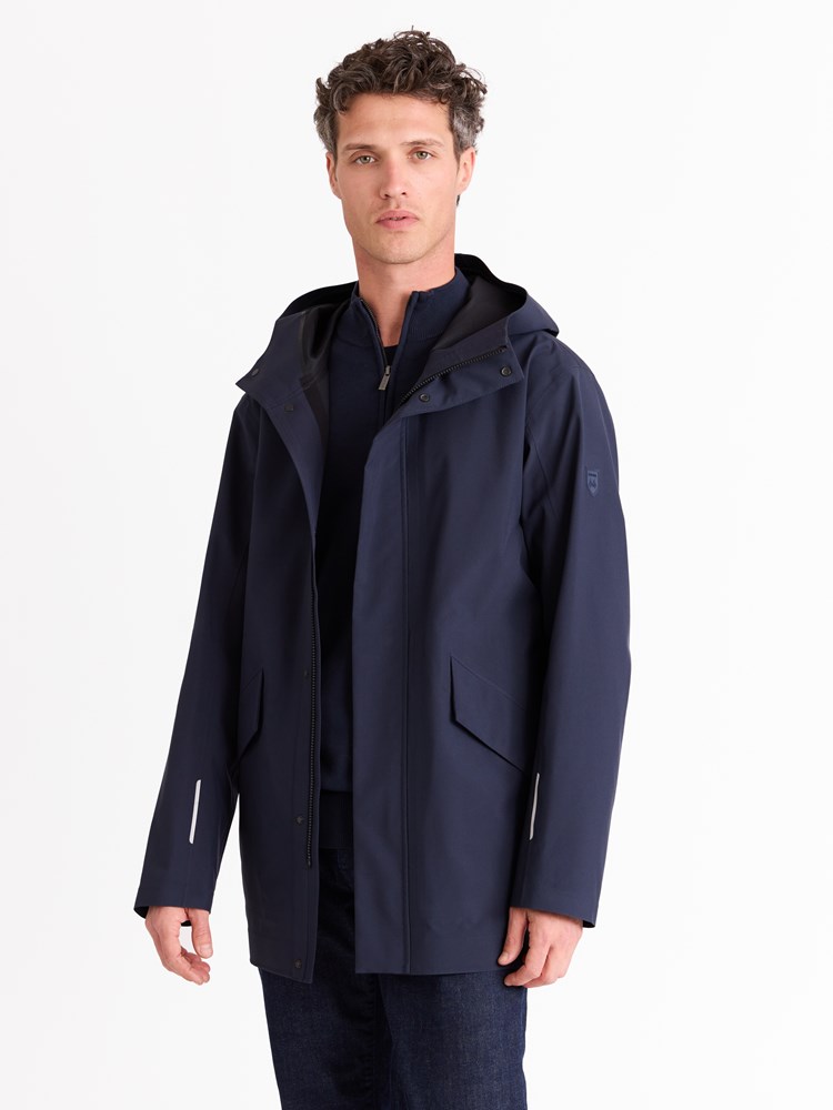 Fulltapet allværsjakke i teknisk stoff med vannsøyle 10 000 mm og pusteevne 10 000 mvp