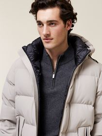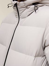 Lun og varm dunjakke med 4way stretchmateriale i 94% resirkulert polyester og 6% elastan med 5000 mm vannsøyle og 5000 mvp pusteevne samt fyll av 90/10 dun og fjær med 650 cuin dunspenst. Jakken har100% resirkulert nylonfôr, kontrastfarget 2 way glidelås i front, doble frontlommer, innvendig elastikk i ermåpning, kraftig nakkehempe i tricolorefarge, regulering i kanten nederst, hjusterbar hette og to gode innerlommer med knapp. Logobadge på ermet og nedfellbare reflekser i siden. Modellen er 185 cm høy og har på seg str L.