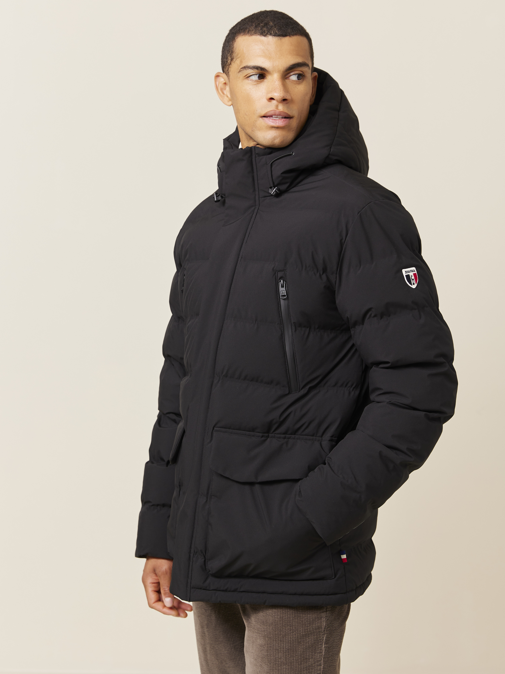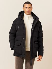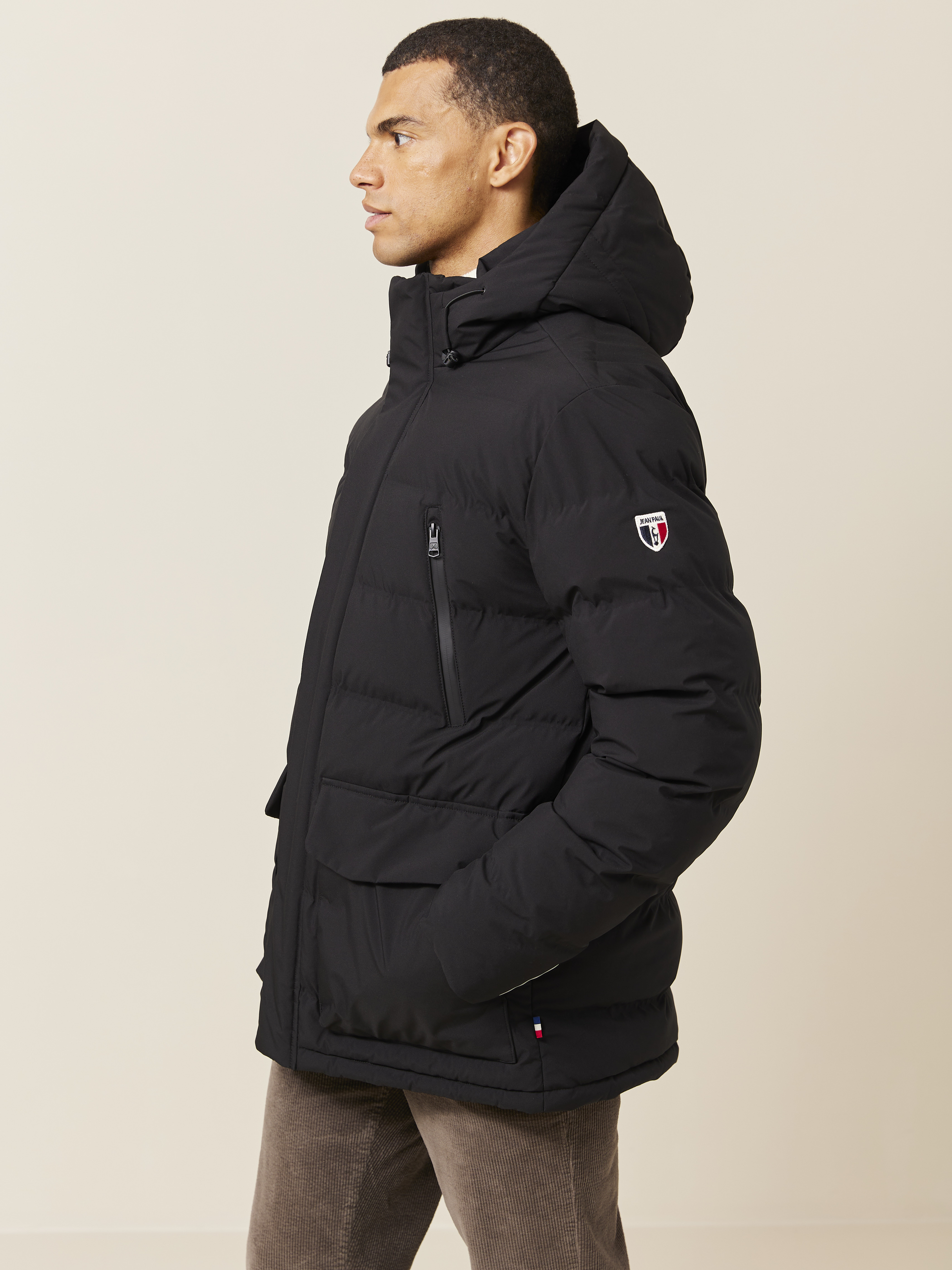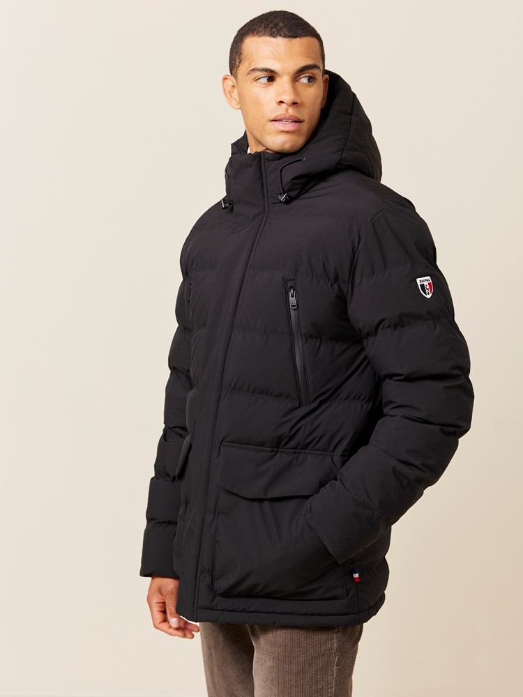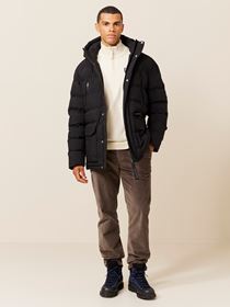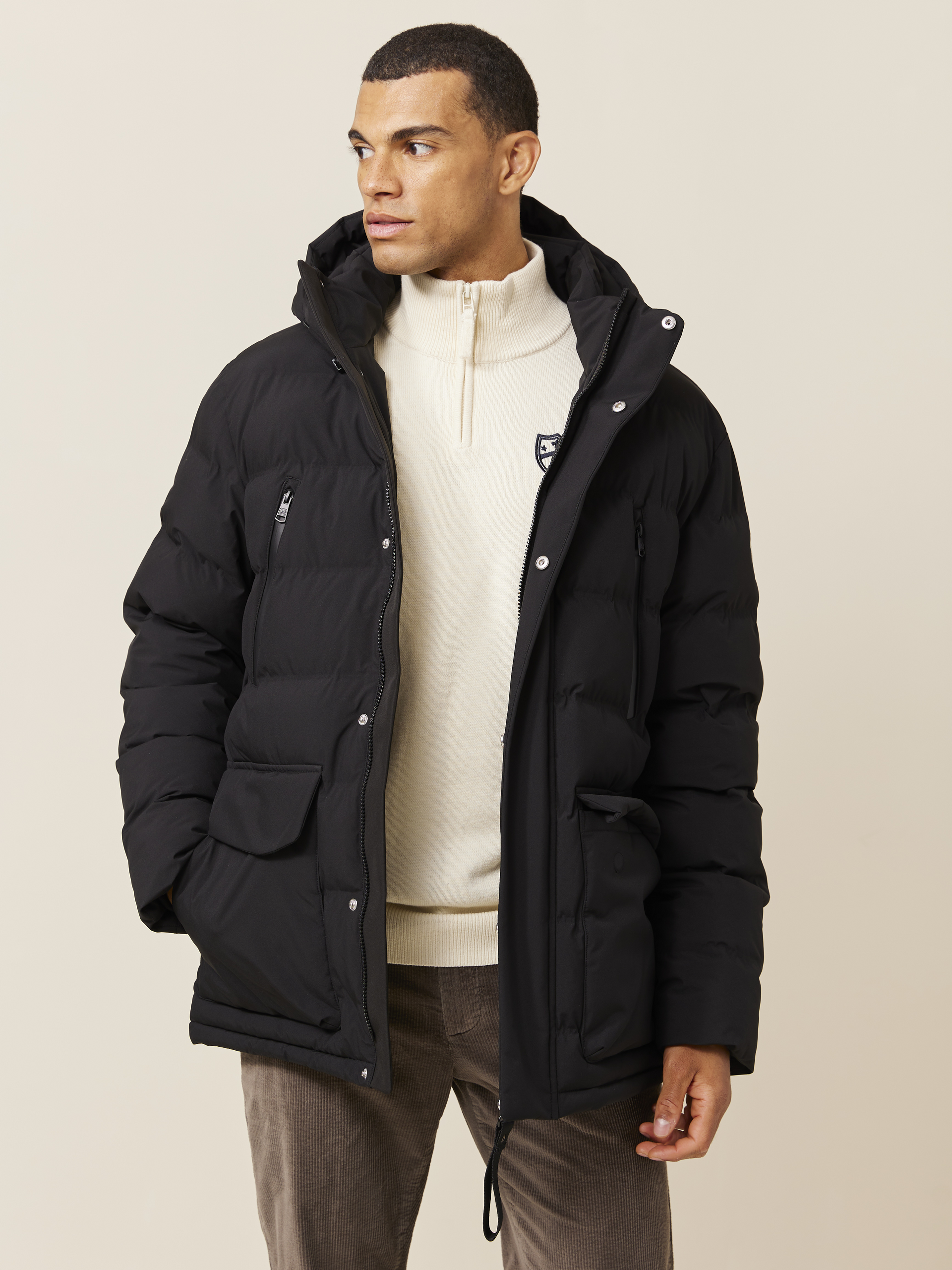 Lun og varm jakke av 100% resirkulert polyestermateriale i ytterstoffet, fôret og den behagelig isolerende vatteringen. Jakken har mykt ytterstoff med mekanisk stretch, hette med regulering, og innvendig krage, svarte kontrastdetaljer, skrå lommer med gummierte glidelåser, doble frontlommer med magnetisk knappet klaff og innstikk, nedfellbare refleksdetaljer i sidene, refleks på ermet, innvendig elastisk mansjett, og god innerlomme med glidelås. Liten tricolorefarget tab i siden og god nakkehempe. Lukkes i front med glidelås med avtagbar glidelåspuller og skjulte trykknapper. Modellen er 185 cm høy og har på seg str L.