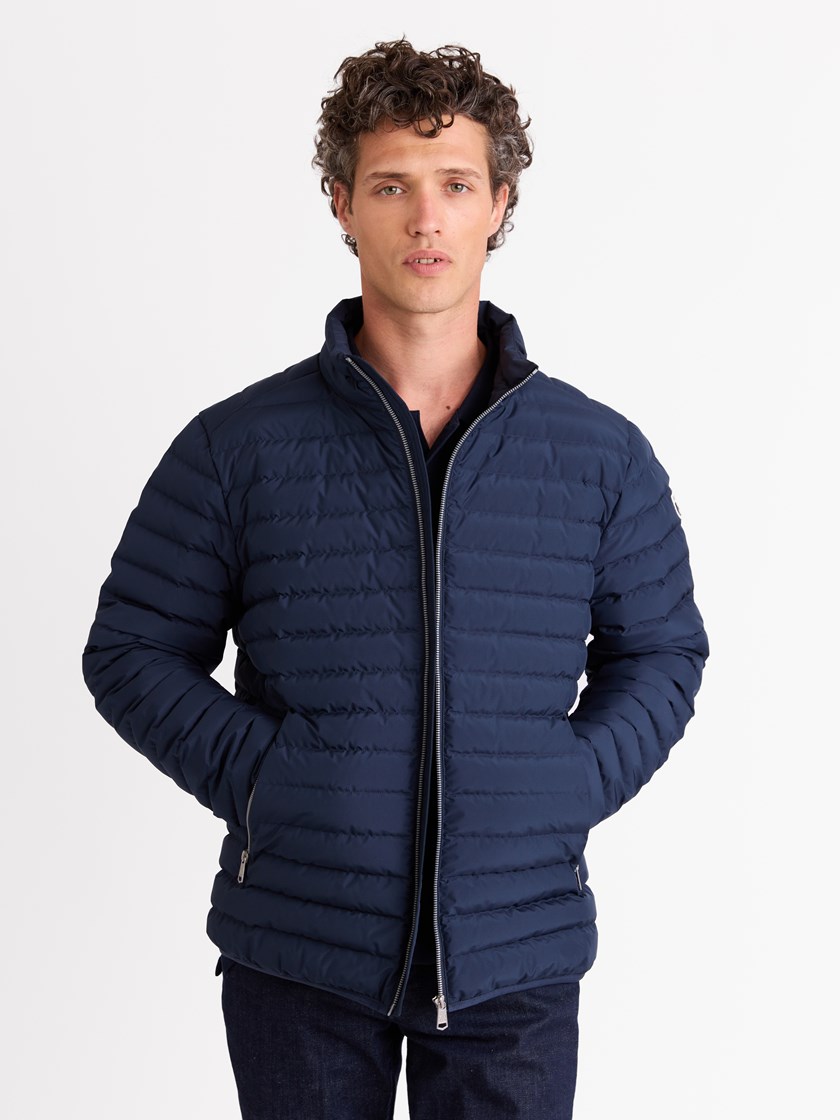 Modellen er 189 cm høy og har på seg str M.Leo dunjakke