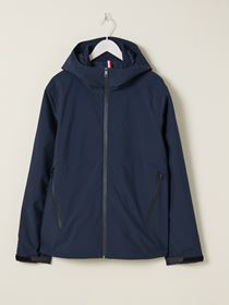 Lun jakke i ytterstoff av 100% resirkulert polyester med 10 000 mm vannsøyle og 10 000 mvp pusteevne og fulltapede sømmer. Jakken har innvendig meshfôr i 100% resirkulert polyester, hette med justering, god krage med fleece, vanntett glidelås i front og elastisk regulering nede i kanten. Jakken har to glidelåslommer utvendig, og en innerlomme med glidelås. Velcro regulering på ermet og ton i ton logobroderi på skulderen. Diskret logobadge på ermet. God lengde. Modellen er 185 cm høy og har på seg str L.