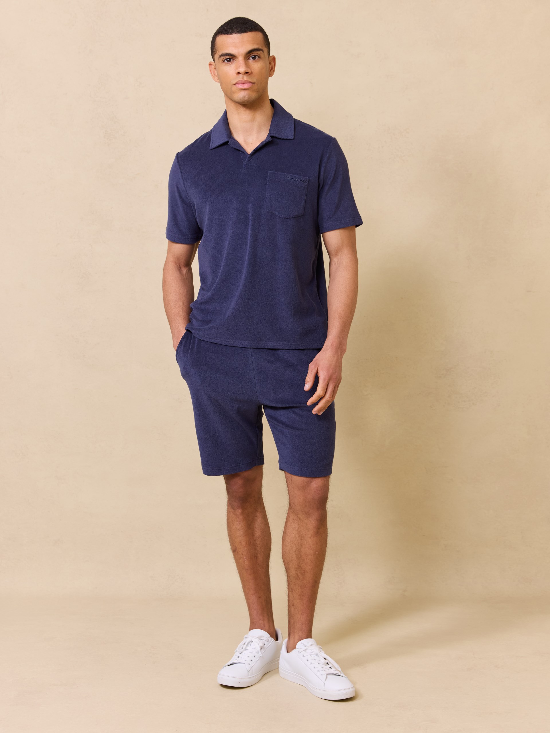 Myk shorts i behagelig bomullsfrottè. Shortsen har elastikk og snøring i livet, stikklommer i front, tab i siden og en baklomme. Kjøp gjerne med Quentin terry polo for komplett sett