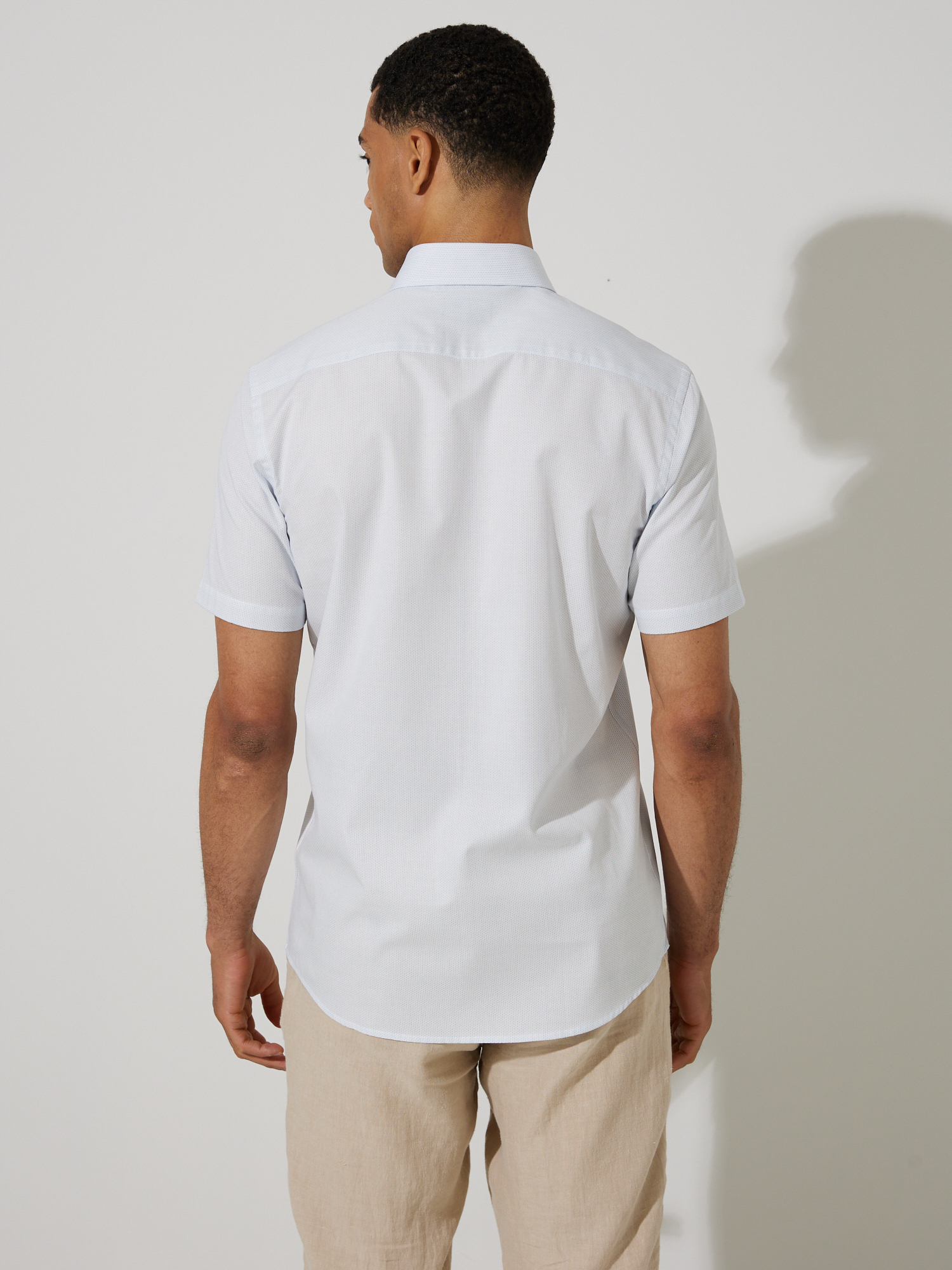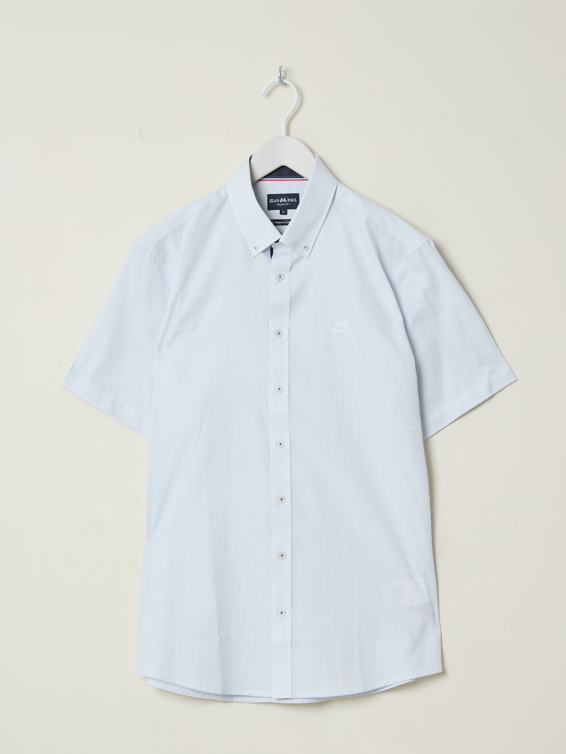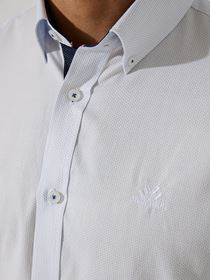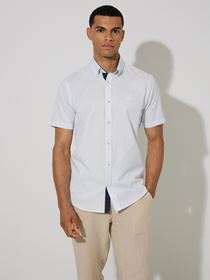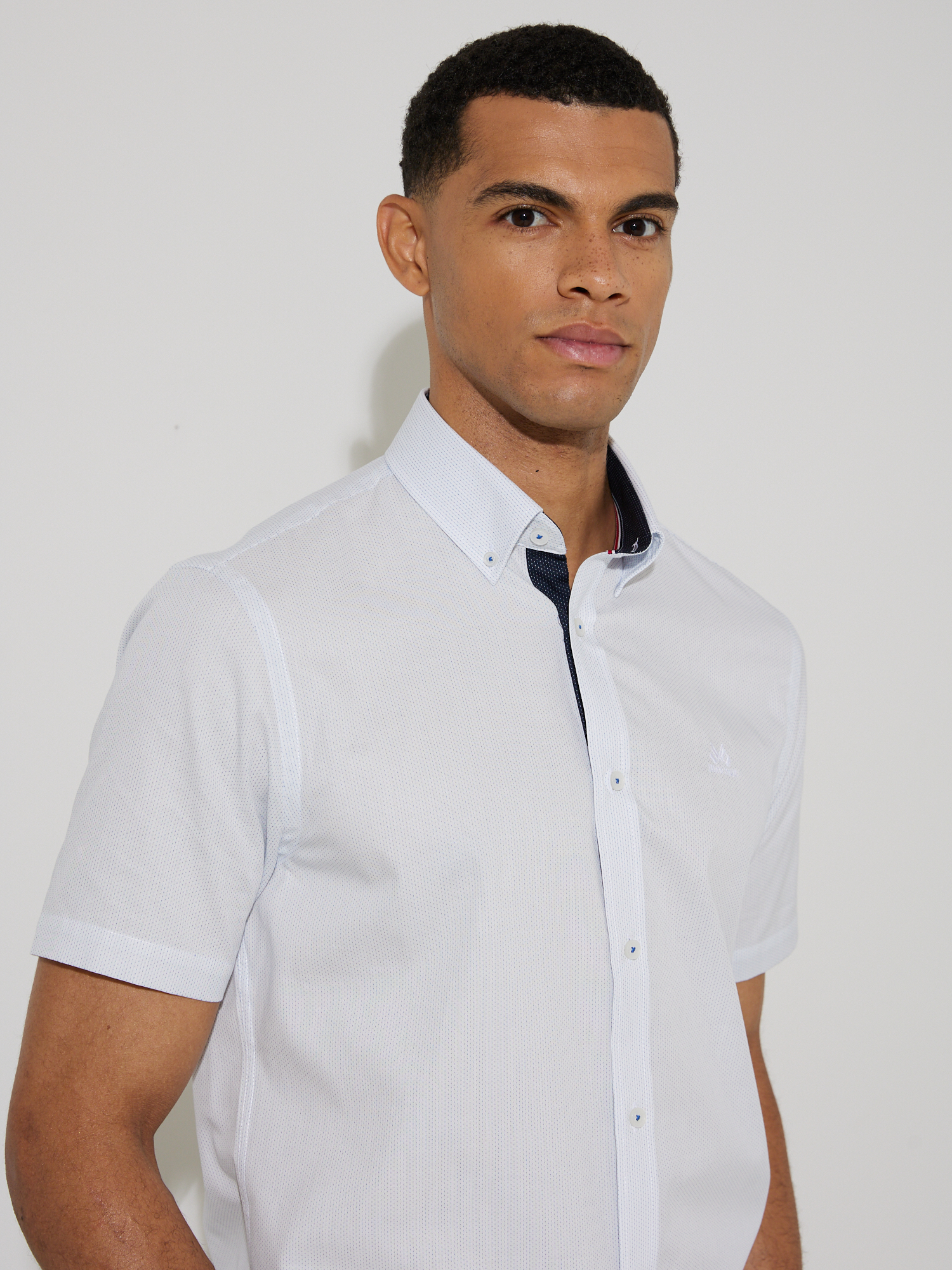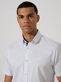 Kortermet skjorte i behagelig easycare behandlet bomull med to tonet effekt. Skjorten har buttondown krage, lyse knapper, kontraststoff i nakken og knappestolpe, ton i ton logobroderi på brystet og klassisk passform.