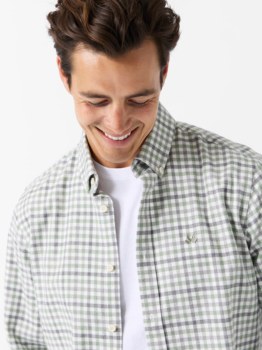 Rutet skjorte i myk børstet melange twill av 100% bomull