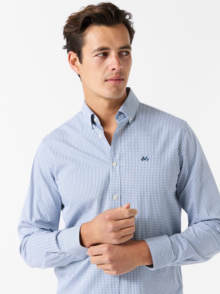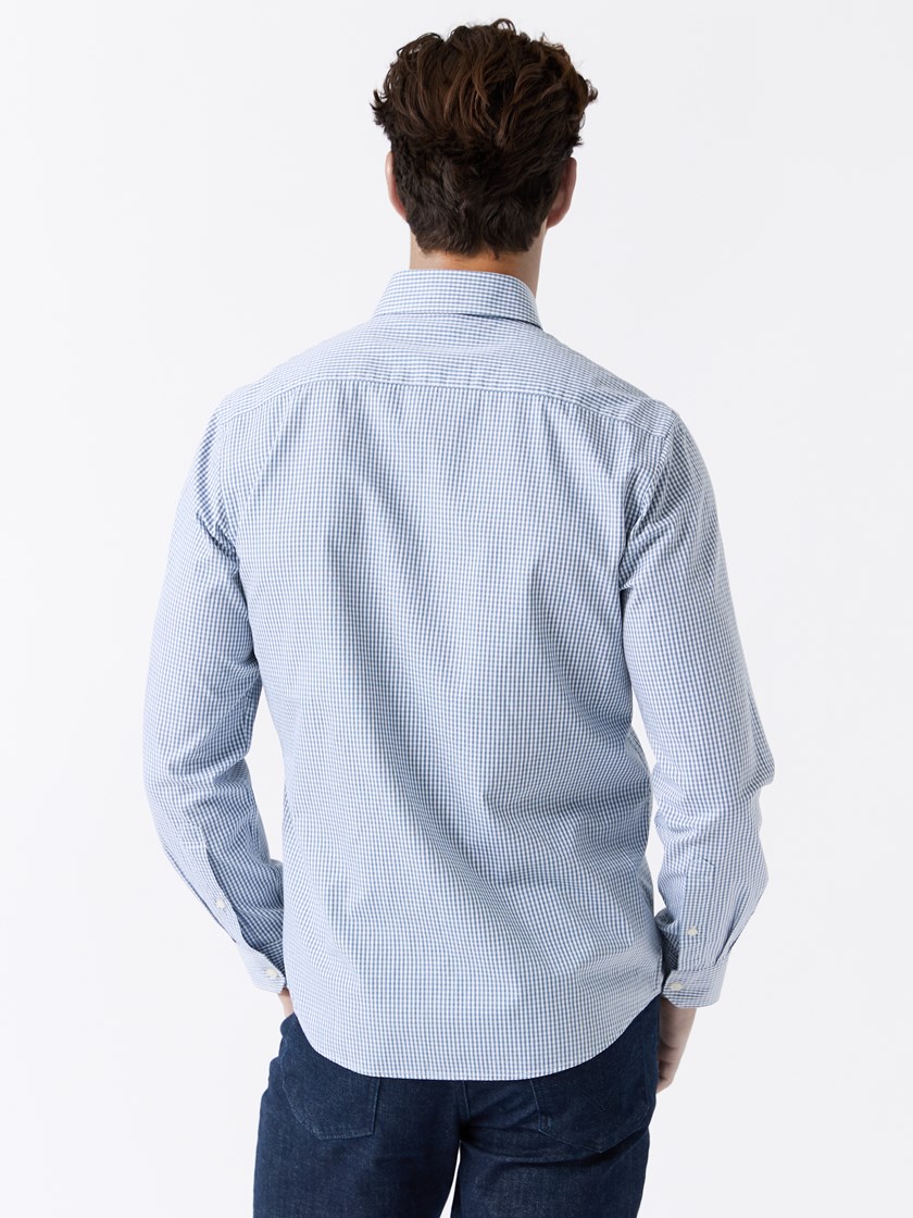 Skjorte i twillvevet smårutet bomull med melange garner.