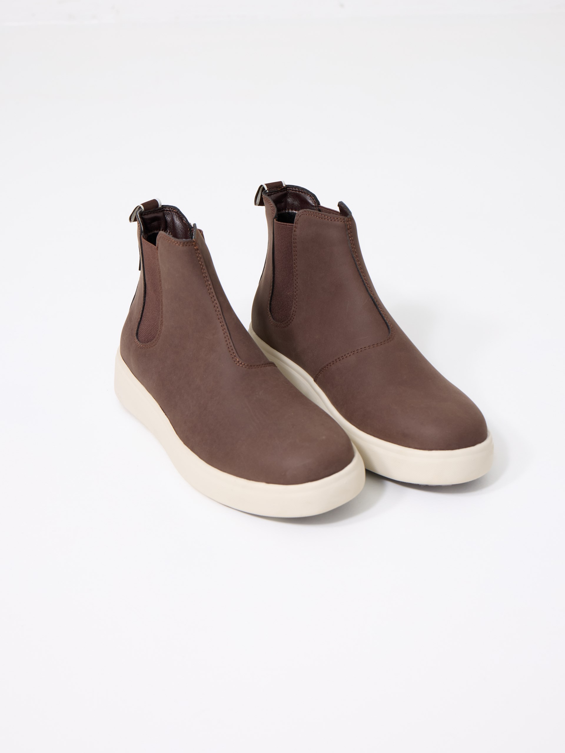 - Vanntett PU i overdel med matt nubuk finish - Vanntett membran - Tapede sømmer - Elastikk på begge sider i skaftet - Fôr i resirkulert polyester
