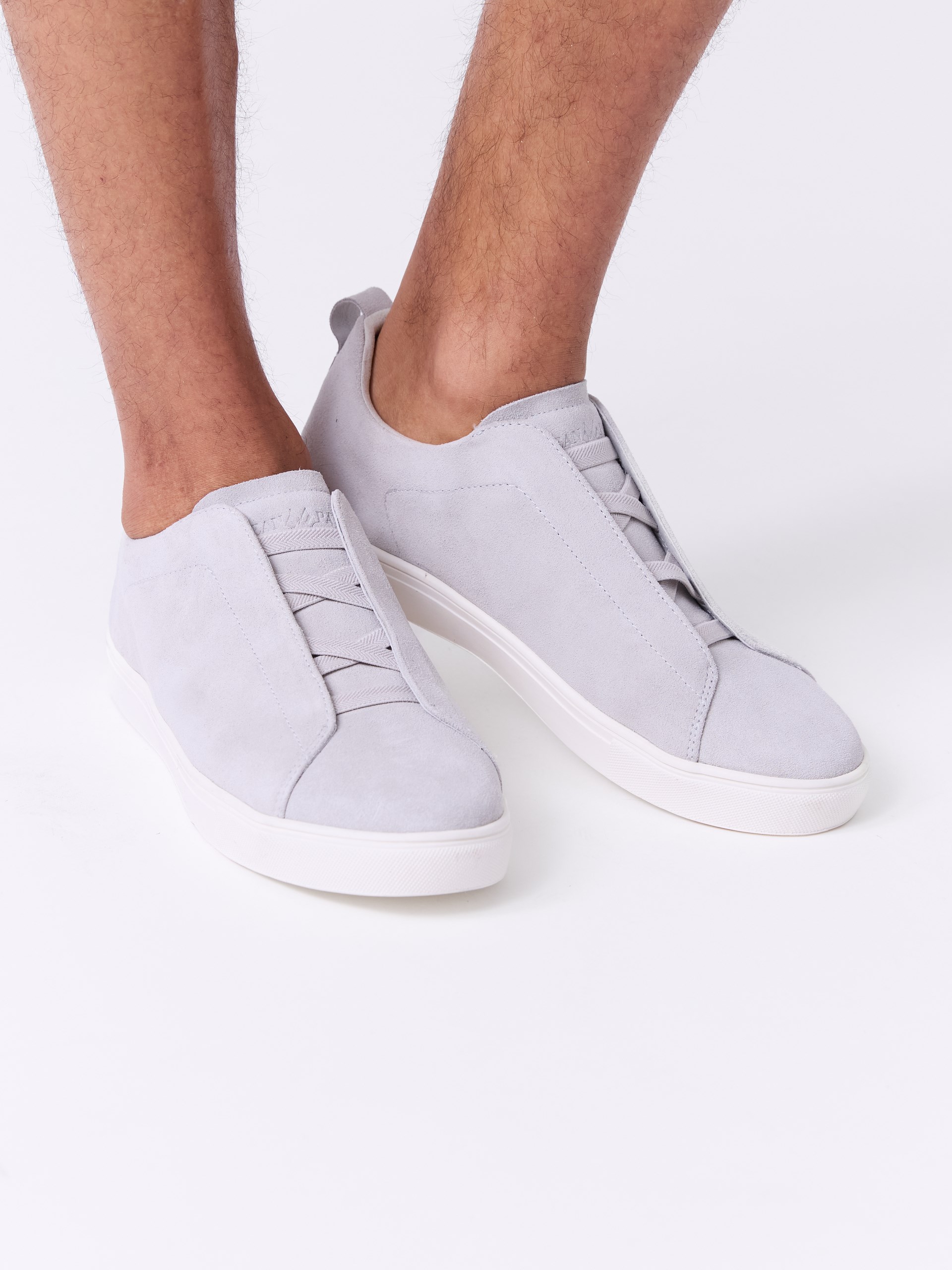 Sneaker i overdel av semsket skinn.