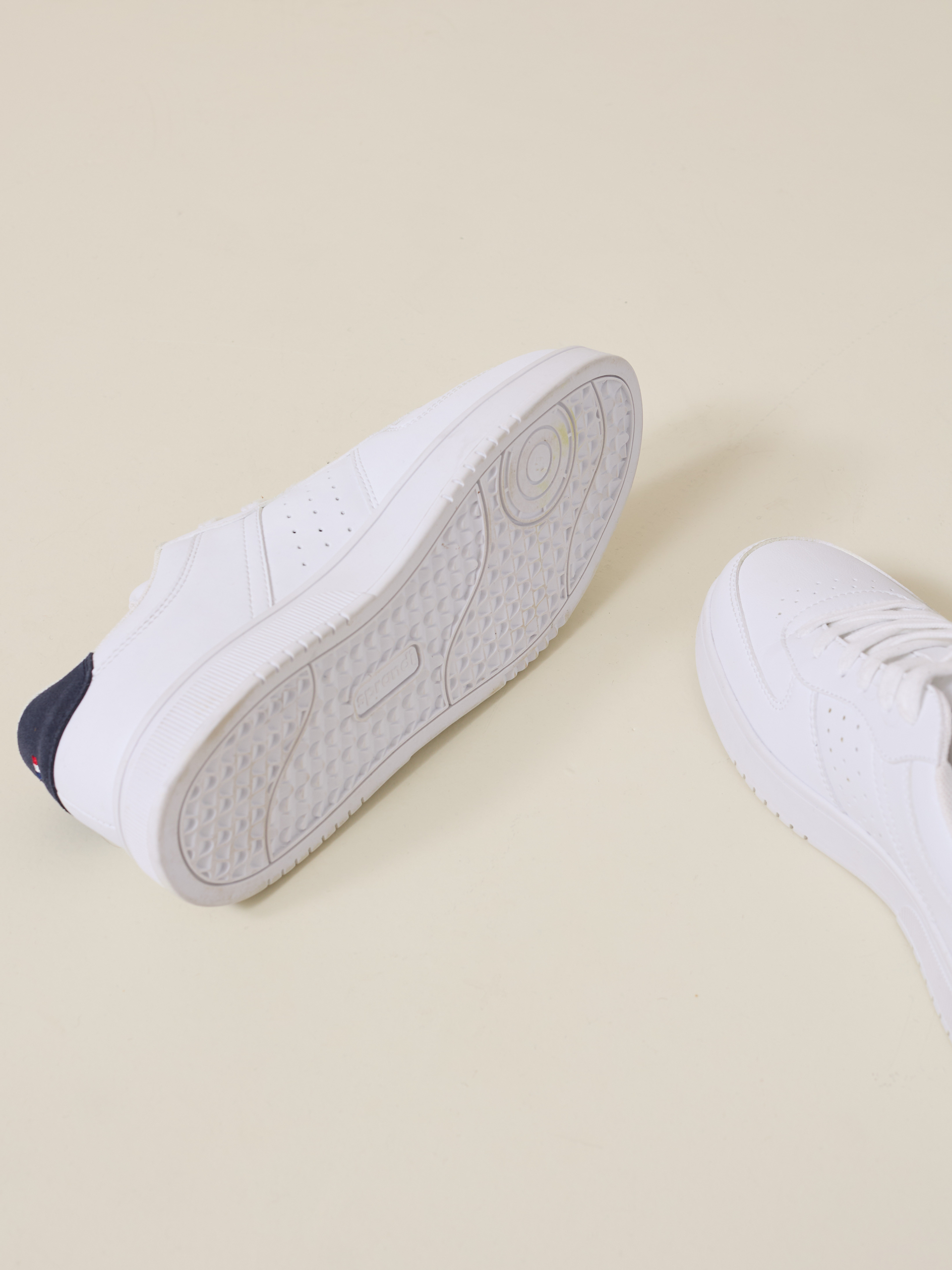Komfortabel sneakers med klassisk tennisinspirert look i mykt syntetisk lær. Skoen har snøring med ton i ton lisser, innvendig meshfôr, god dempet Innleggssåle og hvit yttersåle. Logo på både tunge og hælparti.