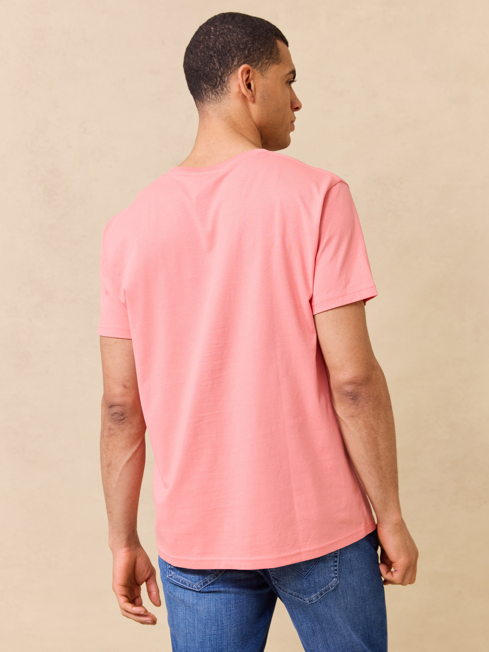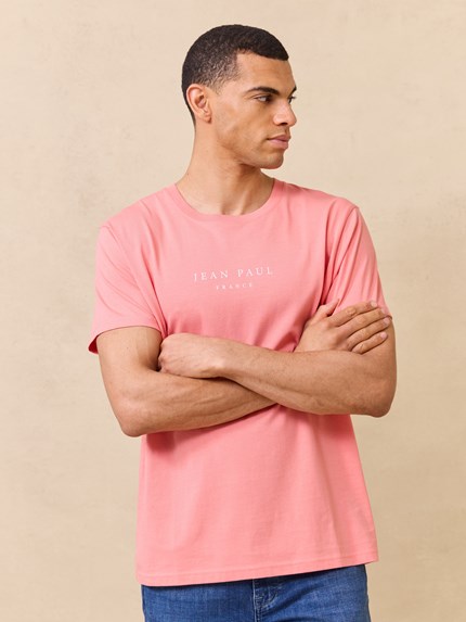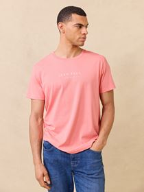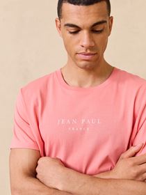 Sporty t-skjorte i 100% myk økologisk bomull med logoprint på brystet, rund hals med ribkant og vevet tricolore logoflagg i siden. Modellen er 185 cm og har på seg str L.