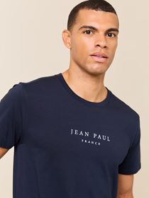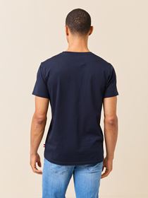 Sporty t-skjorte i 100% myk økologisk bomull med logoprint på brystet, rund hals med ribkant og vevet tricolore logoflagg i siden. Modellen er 185 cm og har på seg str L.